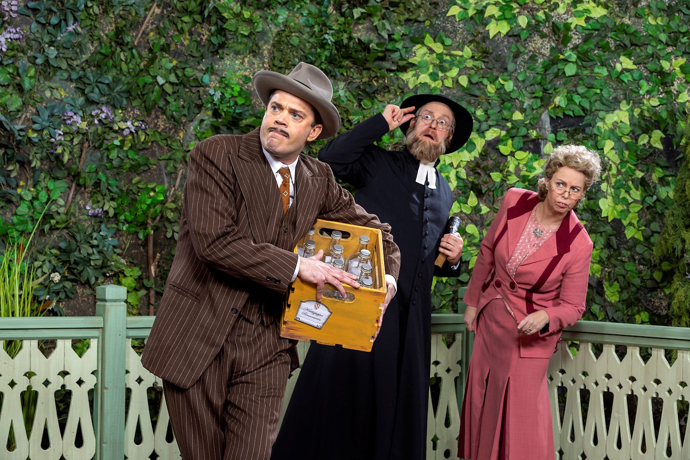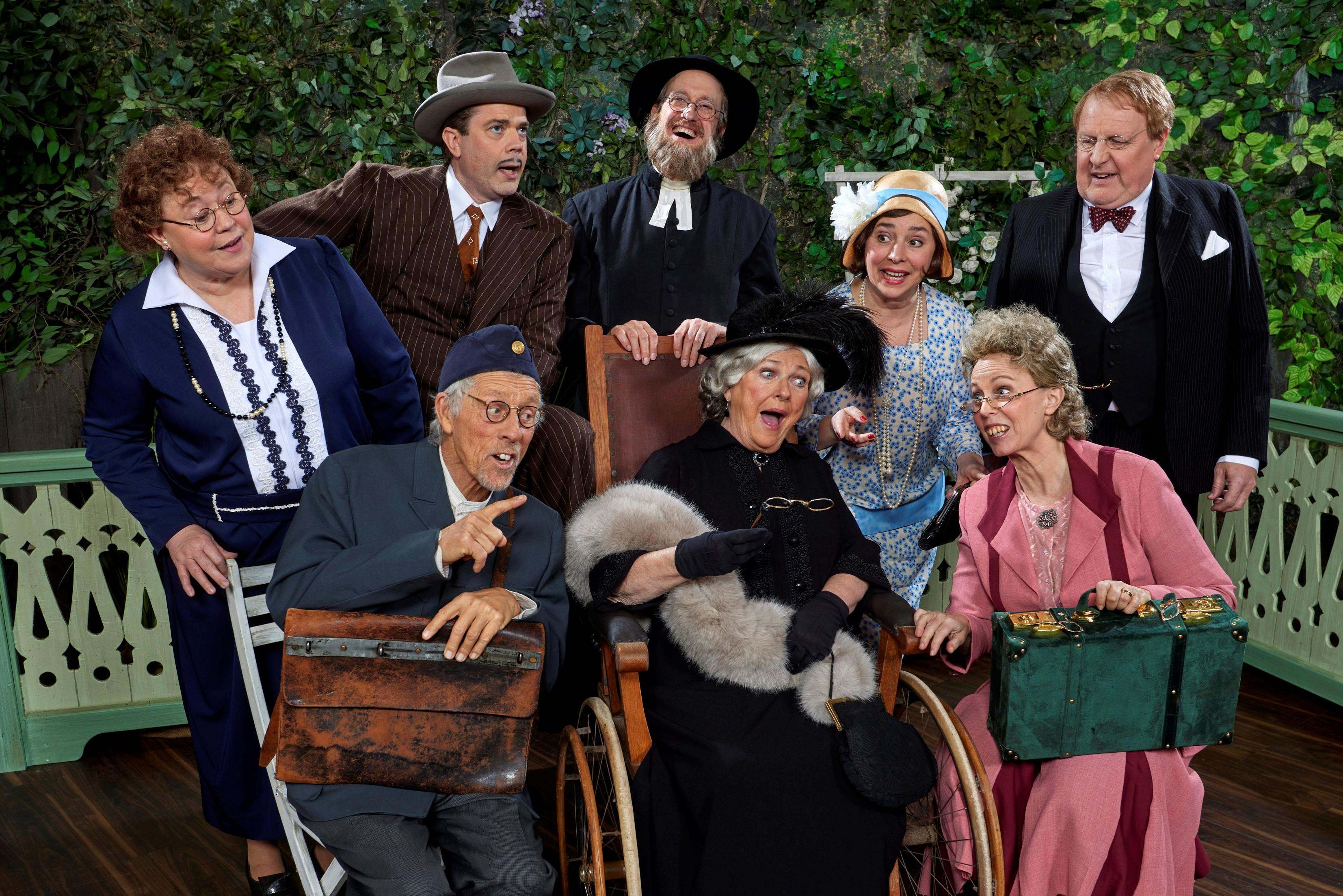När parets dotter Alfrida (Jeanette Capocci) plötsligt dyker upp, en sömnig pastor (Mikael Riesebeck) ska hålla i minnesstunden, den förvirrade brevbäraren Dag-Otto (Jojje Jönsson) försöker ”hjälpa till”, och ett pratglatt hotellpar (Annika Andersson och Mikael Riesebeck) checkar in, är förvecklingarna snart ett faktum.